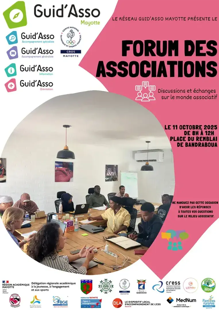Le premier rendez-vous, prévu le 11 octobre à Bandraboua, rassemblera associations, porteurs de projets et structures partenaires autour d’une matinée riche en échanges. Au programme : conférence, présentation des labels et des structures ressources, ainsi que des témoignages inspirants pour encourager la création et le développement associatif.